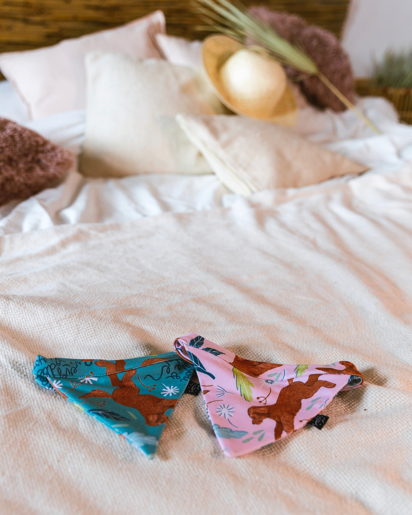 Psia wiązana bandana to akcesorium zaprojektowane przez uzdolnioną Renatę Krawczyk, która pozwoli Twojemu psiakowi wyróżnić się spośród tłumu. Wygodna dla psiaka i łatwa w zakładaniu dla właściciela chusta nie spada nawet podczas intensywnych zabaw. Produkt łatwy w czyszczeniu, a żywy nadruk jest odporny na wielokrotne pranie i regularne użytkowanie.